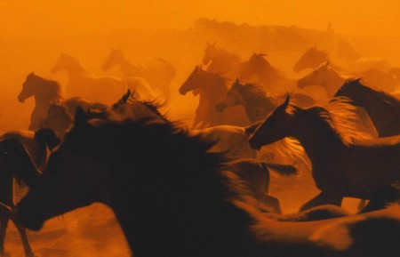 GallopingHorsesAtSunsetInACloudOfDustThatObscuresTheLastRaysOfSun.jpg